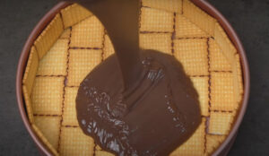 Puneti biscuitii pe fundul formei de copt astfel incat sa fie complet acoperit. De asemenea, puneti biscuitii in jurul perimetrului pe partile laterale ale formei de copt.