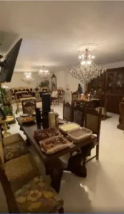 În această încăpere regală, se găsesc un candelabru strălucitor, scaune elegante și tapițate într-un grena nobil, porțelanuri de cea mai înaltă calitate, mobilier vechi și bogat ornamentat.