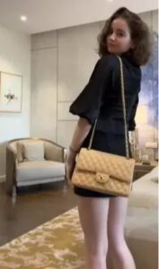 Recent, fiica Monicăi Gabor a postat pe TikTok mai multe videoclipuri în care apare îmbrăcată sofisticat, purtând haine de lux și genți de mii de euro. Unul dintre clipuri, în care poartă o fustă mini, o bluză neagră cu mâneci evazate și o geantă Louis Vuitton, a acumulat aproape două milioane de vizualizări.