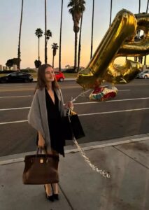 Irina Columbeanu s-a sărbătorit în Santa Barbara, California, după cum se vede în imaginile publicate chiar de ea, pe Instagram. Cu baloane în mână, care arată cifrele 1 și 8, cu multe pungi de cadouri, cu un zâmbet frumos pe chip, fiica lui Irinel și a Monicăi a organizat o ieșire la un restaurant de sushi. Irina a purtat o rochie neagră, scurtă, peste care a aruncat un șal gri, iar ținuta a accesorizat-o cu pantofi negri și o geantă supradimensionată.