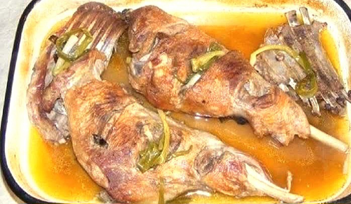 Carnea se stropește cu un fir de ulei, se adaugă o ceașcă de vin și una de apă, se acoperă tava cu folie de aluminiu sau hârtie de copt, apoi se pune în cuptorul încins, pentru 30 de minute.