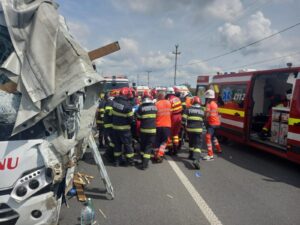 ”Intervenţia este în dinamică, echipajele operative acţionând pentru acordarea primului ajutor medical, extragerea victimelor şi evaluarea stării de sănătate a celorlalţi pasageri din autocar”, precizează reprezentanţii ISU.