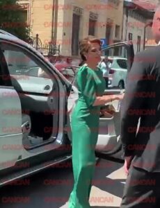 Printre momentele care au atras atenția s-a numărat sosirea părinților mirelui, care au impresionat prin ținutele lor rafinate. Aceștia au venit într-o mașină albă, stârnind admirația invitaților. Mama lui Thomas, Evangelia Taka, a purtat o rochie verde lungă, croită astfel încât să îi evidențieze silueta, fiind admirată de cei prezenți. Tatăl mirelui a optat pentru un costum elegant și discret, completând perfect apariția cu o notă de sobrietate.