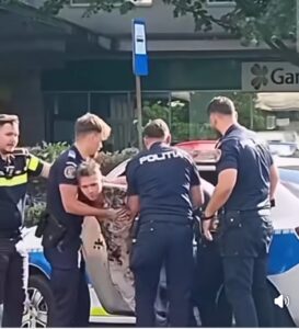 Scene șocante în centrul Bucureștiului! Imobilizare spectaculoasă ca în filmele de acțiune. Un bărbat, legat și ridicat de polițiști după ce și-a agresat soția