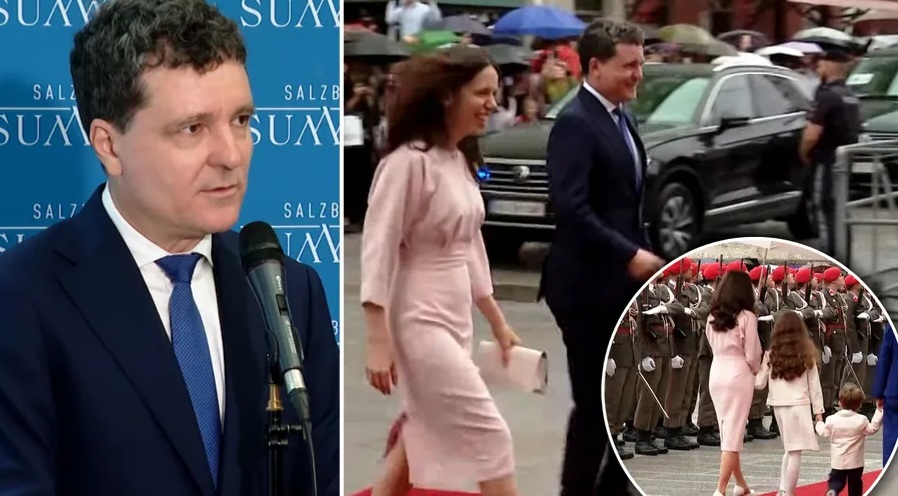 Vineri, familia președintelui României a fost primită la Salzburg Residenz de către șeful statului austriac. La ceremonia oficială au fost prezenți și Mirabela Grădinaru, împreună cu cei doi copii, alături de Nicușor Dan.