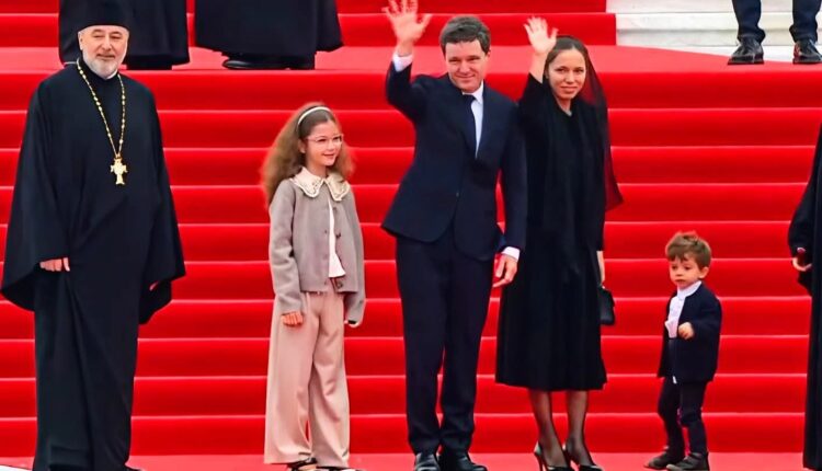 În clipa în care întreaga familie a coborât din autoturism, fiul cel mic al lui Nicușor Dan a început să alerge prin curtea Catedralei, iar mama sa, Mirabela, s-a grăbit imediat să îl prindă. Șeful statului a ales o ținută sobră, alcătuită dintr-un costum negru și o cămașă albă, în timp ce soția sa a purtat o rochie neagră, accesorizată cu un element discret pe cap, care i-a completat elegant apariția potrivită acestui moment solemn.