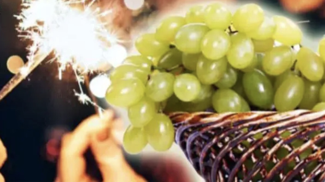 Acest obicei presupune mâncatul a 12 boabe de struguri, fiecare simbolizând o lună din noul an, în timpul celor 12 bătăi ale ceasului la miezul nopții de Revelion.