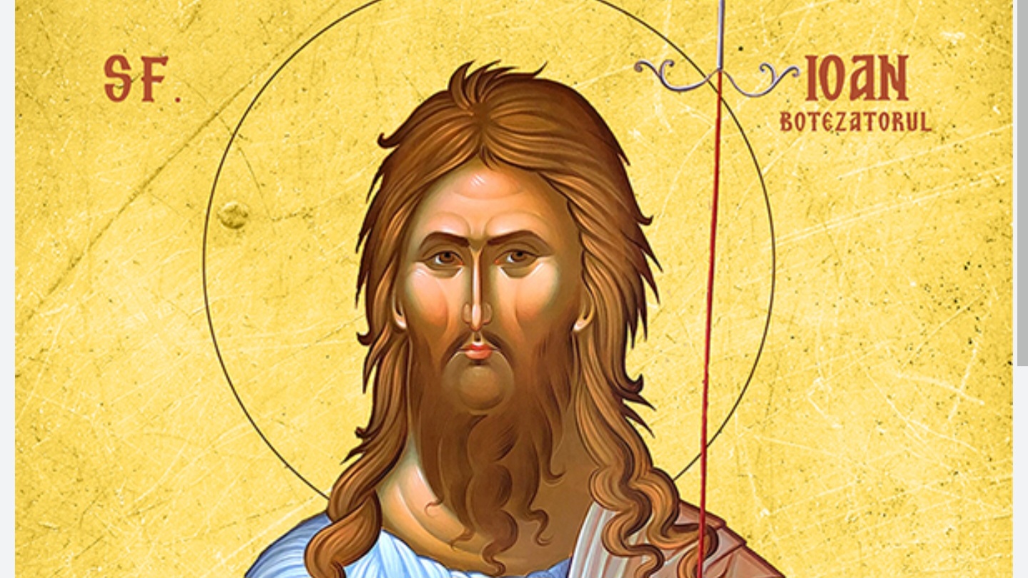Sfinte Botezatorule, tu ai fost chemat de Dumnezeu, inca inainte de a te naste, sa-i pregatesti pe oameni pentru venirea Fiului Sau, iar multimile atrase de faima sfinteniei tale si de puterea Duhului Sfant, ca cel al profetului Ilie, primeau botezul pocaintei in semn de convertire la Dumnezeu.