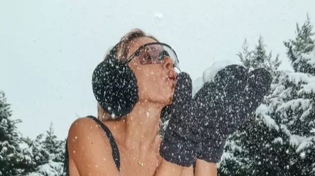 Vedeta arată că este perfect conștientă de punctele sale forte și nu ezită să le scoată în evidență, indiferent de anotimp. A purtat un costum de baie, combinat într-un mod neașteptat cu cizme de iarnă, mănuși groase și apărătoare pentru urechi. Această combinație neobișnuită a devenit rapid subiect de discuții aprinse pe rețelele sociale.