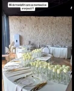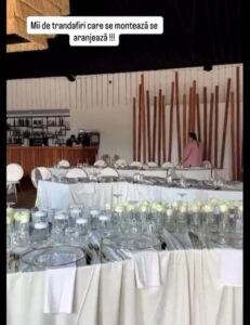 Ceremonia și petrecerea au fost puse la punct într-un decor spectaculos aflat lângă Buftea, pe malul unui lac, într-o locație amenajată rafinat și romantic. Primele imagini apărute pe internet prezintă un spațiu dominat de trandafiri albi și aranjamente florale elegante, gândite să creeze o atmosferă de poveste.
